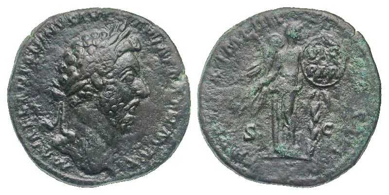 Lot 51-169. Marcus Aurelius. A.D. 161-180. AE sestertius. Rome mint, struck A.D. 166.