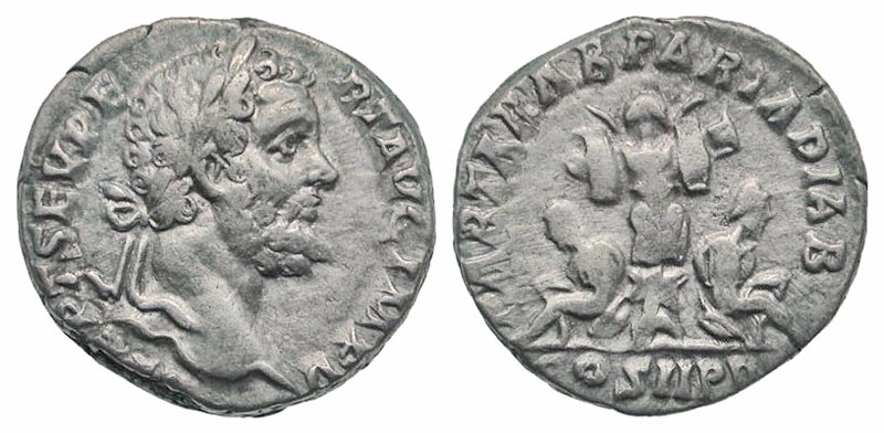 Lot 51-173. Septimius Severus. A.D. 193-211. AR denarius. Rome mint, struck A.D. 195.