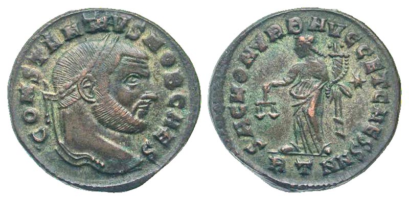 Lot 51-192. Constantius I. As Caesar, A.D. 293-305. AE follis. Rome mint, struck A.D. 302-303. Scarce. Ex Elwood Rafn collection.