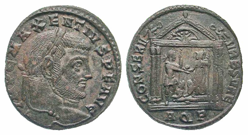 Lot 51-194. Maxentius. A.D. 306-312. AE follis. Aquileia mint, struck A.D. 307. Scarce type.
