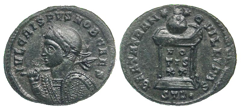 Lot 51-198. Crispus. Caesar, A.D. 317-326. AE follis. Trier mint, struck A.D 145-147.