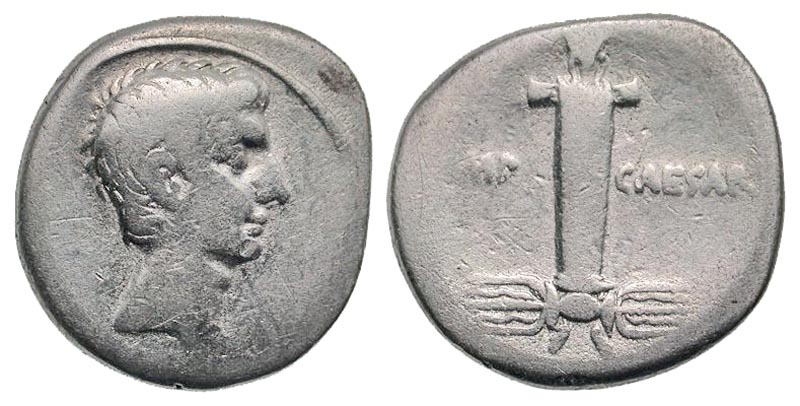 Lot 52-157. Octavian. 44-27 B.C. AR denarius. Italian (Rome?) mint. Ex D. Thomas Collection.