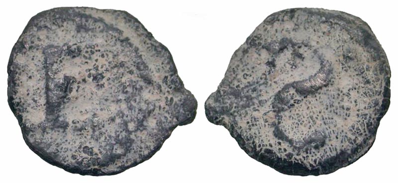 Anonymous. 1st century B.C. - 1st century A.D. PB tessera (13.9 mm, 1.59 g, 11 h). E / Backwards S. VF.