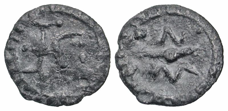 Anonymous. 1st century B.C. - 1st century A.D. PB tessera (12.0 mm, 0.74 g, 12 h). JC, pellets in field / Open star. VF.