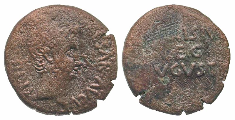 Lot 52-170. Augustus. 27 B.C.-A.D. 14 AE as. Emerita mint, struck ca. 25-23 B.C. Ex D. Thomas Collection.