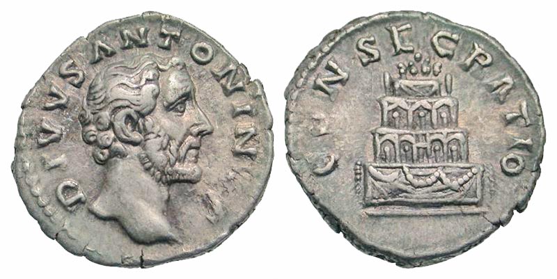 Lot 52-188. Divus Antoninus Pius. Died A.D. 161. AR denarius. Rome mint, struck A.D. 161.