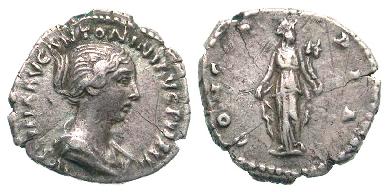Lot 52-192. Faustina II. Augusta, A.D. 147-175. AR Denarius. Rome mint, struck A.D. 147-150.