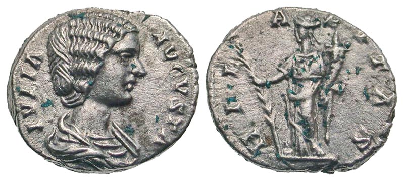 Lot 52-202. Julia Domna. Augusta, A.D. 193-217. AR denarius. Laodicea ad Mar mint, struck A.D. 196-203.
