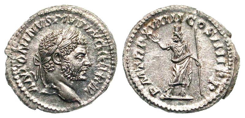 Lot 52-205. Caracalla. A.D. 198-217. AR denarius. Rome mint, struck A.D. 216.