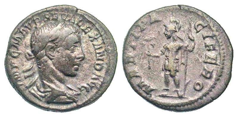 Lot 52-213. Severus Alexander. A.D. 222-235. AR denarius. Rome mint, struck A.D. 222.