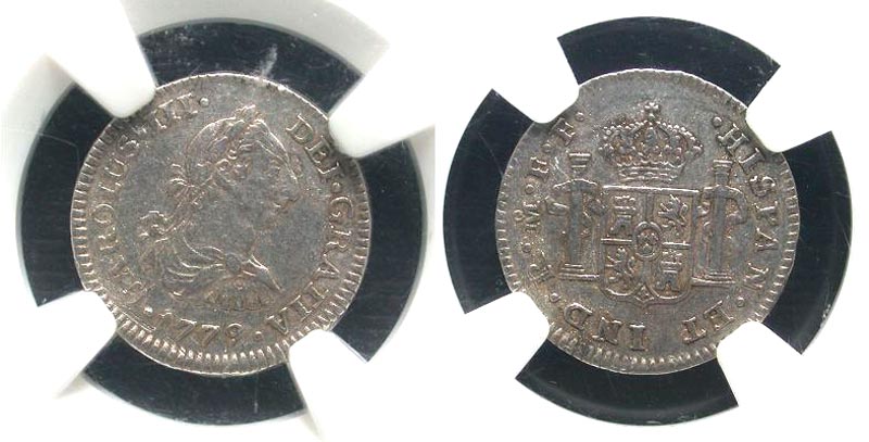 Lot 52-301. Mexico, Colonial. Carlos III. To 1821. AR 1/2 real. Ex El Cazador shipwreck.