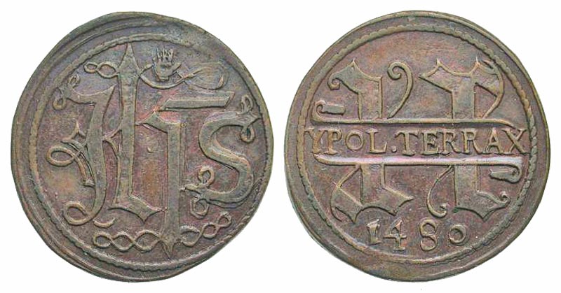 Struck for distribution of bread, done from 1480 annually. Terrax was the mintmaster at Antwerp.