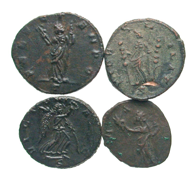 [Roman Imperial]. Lot of 4 Claudius II Gothicus Antoninianii. Reverse types: Felicitas, Fides, Pax, Victory. Average grade aVF-EF.