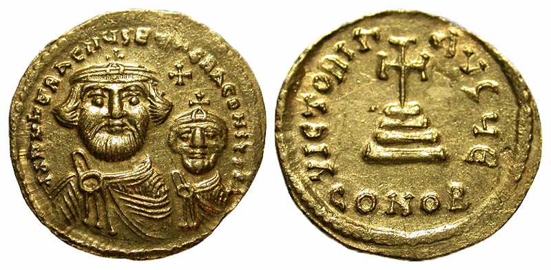 Heraclius. 610-641. AV solidus (20.7 mm, 4.46 g, 7 h). Constantinople, 629-631. dd NN hЄRACLI4 Є hЄRA CONSt P P AV, crowned facing busts of Heraclius and Heraclius Constantine; cross above / VICTORIA AVG4, cross potent set on three steps; Є/CONOB. SBV 749; DOC 26e. gVF.