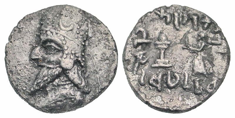 Lot 53-063. Kingdom of Persis. Darios (Darev) II. 1st century B.C. AR drachm. Istakhr (Persepolis). Ex George Spradling Collection.