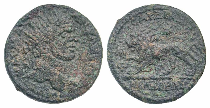 Lydia, Sardes. Caracalla. A.D. 198-217. AE 25 (25.0 mm, 6.28 g, 6 h). AVT KAI M AVP ANTΩNEINOC, radiate head right / CAPΔIANΩN B NEΩKOPΩN, lion walking left, star above, bee to left. BMC 165; SNG von Aulock -; SNG Cop -. aVF, rough. Rare.