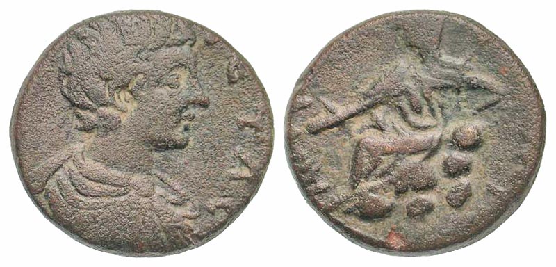Lot 53-111. Arabia Petraea, Petra. Geta. As Caesar, A.D. 198-209. AE 22. Scarce.