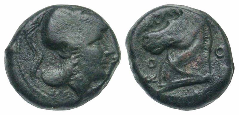 Anonymous. ca. 260 B.C. AE litra (17.5 mm, 5.16 g, 11 h). Rome mint. RO[MANO], Helmeted head of Minerva right; star to left / ROMANO, horses head left. Crawford 17/1g; Sydenham 3b; HN Italy 278. aVF.
