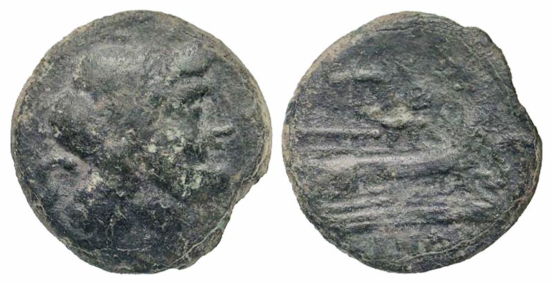 Anonymous [Apex and Hammer]. Ca. 211-208 B.C. AE sextans (24.7 mm, 8.10 g, 6 h). Sextanal standard, light series. Uncertain central Italian mint. Laureate head of Saturn right, S behind / ROMA / S, prow right, apex and hammer. Crawford 59/3; Sydenham 150a. Fine. Ex RBW collection (not in previous sales), M. Temestini (February 1996).