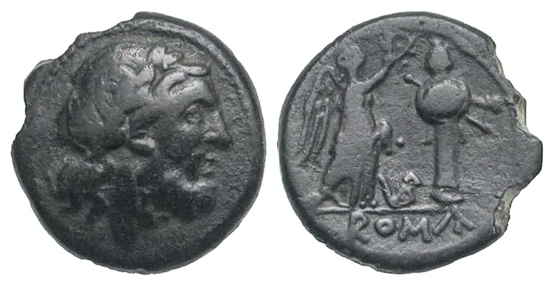 Lot 53-147. Anonymous. 206-195 B.C. AR victoriatus. Rome mint. Scarce. Ex RBW collection (not in previous sales).