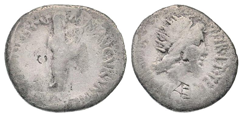 Lot 53-164. Mark Antony. 43-30 B.C. AR denarius. Military Mint (Athens), struck 38-37 B.C. with Marcus Antonius. Rare.