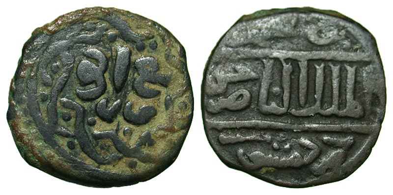 Lot 6-314. Bahri Mamluk. Hasan (al-Nasir Nasir al-Din Abu'l-Mahasin). 748-752 & 755-762/1347-1351 & 1354-1361. Æ fals. Dimashq, 749 AH.