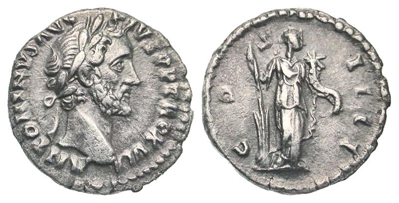 Lot 53-187. Antoninus Pius. A.D. 138-161. AR denarius. Rome mint, struck A.D. 149-150.