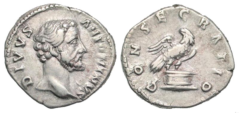 Lot 53-191. Divus Antoninus Pius. Died A.D. 161. AR denarius. Rome mint, struck under Marcus Aurelius and Lucius Verus, A.D. 161.