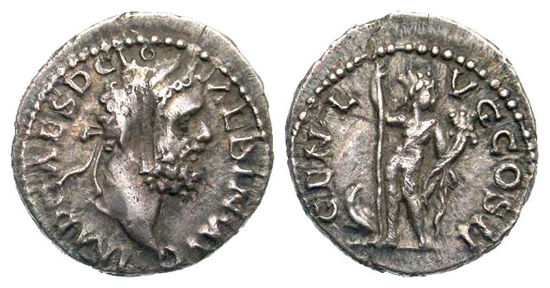 Lot 53-199. Clodius Albinus. A.D. 195-197. AR denarius. Lugdunum mint, struck A.D. 194-195.