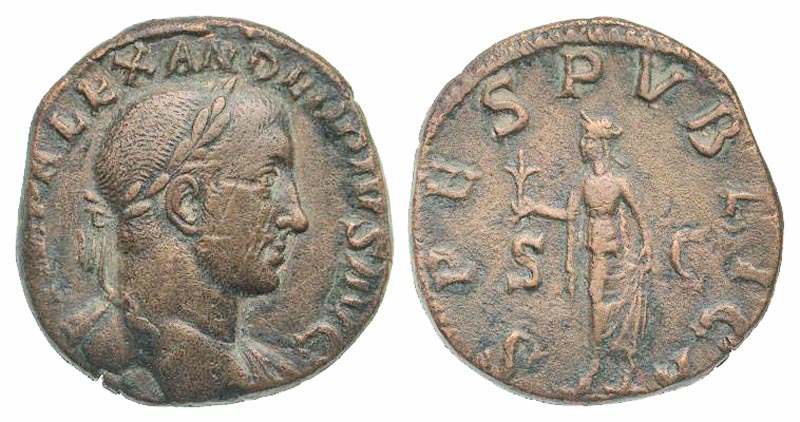 Lot 53-201. Severus Alexander. A.D. 222-235. AE sestertius. Rome mint, struck A.D. 232.