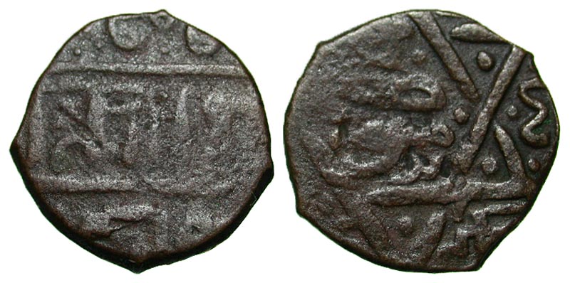 Bahri Mamluk. Hajji II (al-Salih Salah al-Din). First reign, 783-784/1381-1382. Æ fals (16.6 mm, 2.80 g). Dimashq, 783 AH. Legend within horizontal band / Legend within six-pointed star. Balog 532. Fine.