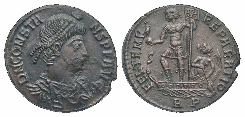 Lot 53-234. Constans. A.D. 337-350. AE centenionalis. Rome mint, struck A.D. 348-350. Rare.