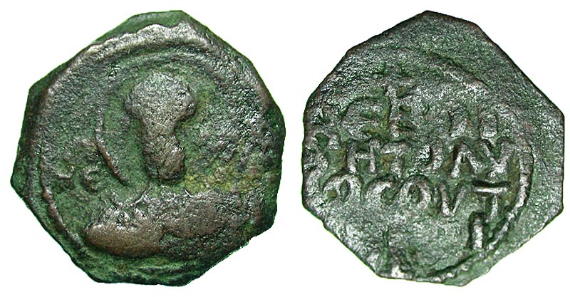 Crusaders, Antioch. Tancred. Regent, 1101-03, 1104-12. Æ Follis (20.6 mm, 3.67 g, 12 h). Nimbate bust of St. Peter facing, holding scroll and long cross / + / KEBOI / QHTO AV / LOCOV T / ANKPI in five lines. Metcalf 54. Fine, green patina.