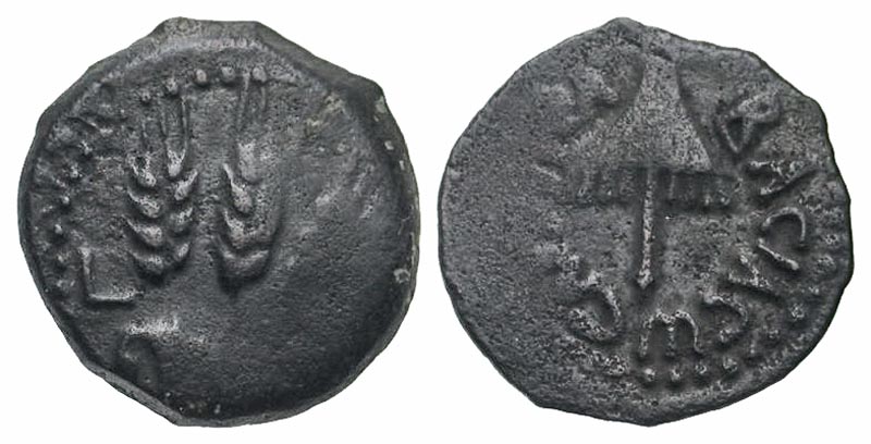 Lot 54-068. Judaea, Herodian Kingdom. Agrippa I. 37-44 C.E. AE prutah. Jerusalem mint, struck 41-42 C.E..