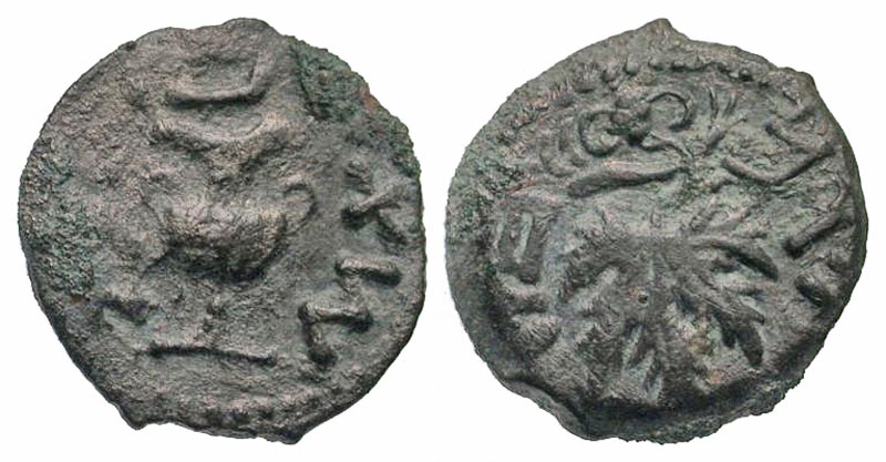 Lot 54-070. Judaea. First Jewish War. 66-70 C.E. AE prutah. Dated year 2 = 67/8 C.E..