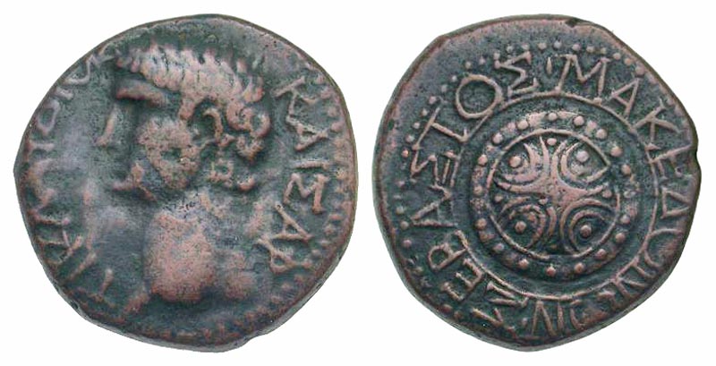 Lot 54-081. Koinon of Macedon. Claudius. A.D. 41-54. AE 24. Ex George Spradling collection.