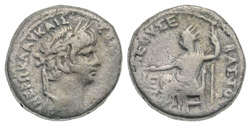 Egypt, Alexandria. Nero. A.D. 54-68. BI tetradrachm (24.6 mm, 11.72 g, 1 h). Dated RY 5=A.D. 58/9. ΝΕΡΩΝ ΚΛΑΥ ΚΑΙΣ ΣΕΒΑ ΓΕΡ ΑΥΤΟ, laureate head right / ΠΡΟΝ ΝΕΟΥ ΣΕΒΑΣΤΟΥ, L E, Nero, radiate, seated left, holding mappa(?) and scepter. RPC 5233; Milne 181; Dattari 201; Emmett 120. aVF.