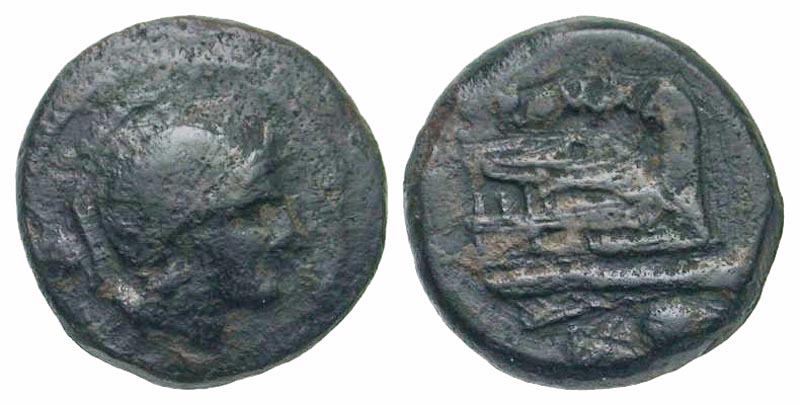Anonymous. after 211 B.C. AE uncia (17.2 mm, 4.13 g, 1 h). Luceria mint. Helmeted head of Roma right; pellet behind / ROMA above, prow of galley right; L and pellet below. Crawford 97/15; Sydenham 178f. Fine. Rare.