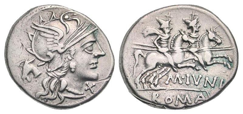Lot 54-120. M. Junius Silanus. 145 B.C. AR denarius. Rome mint.