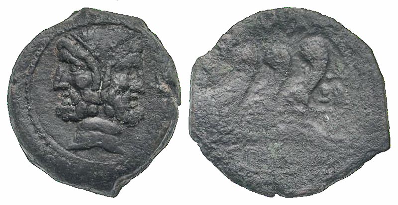 C. Vibius C.f. Pansa. 90 B.C. AE as (30.5 mm, 13.46 g, 2 h). Semuncial standard. Rome mint. Laureate head of Janus, I above / ROMA / C·VIBIV·C·F / PANSA, three prows of galleys right. Crawford 342/7b; Sydenham 690. Fine, rough, two casting sprues.