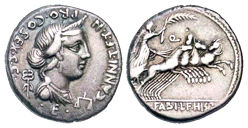 Lot 54-128. C. Annius T.f. T.n and L. Fabius L.f. Hispaniensis. 82-81 B.C. AR denarius. Mint in northern Italy or Spain.