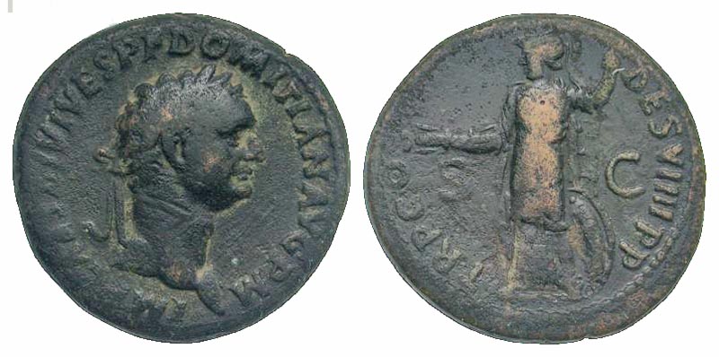 Lot 54-136. Domitian. A.D. 81-96. AE as. Rome mint, Struck A.D. 82. Scarce.