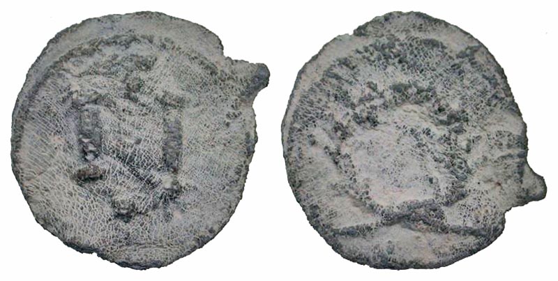 Anonymous. 1st century B.C. - 1st century A.D. PB tessera (16.5 mm, 1.93 g, 12 h). N, pellet above and below / Wreath. Fine.