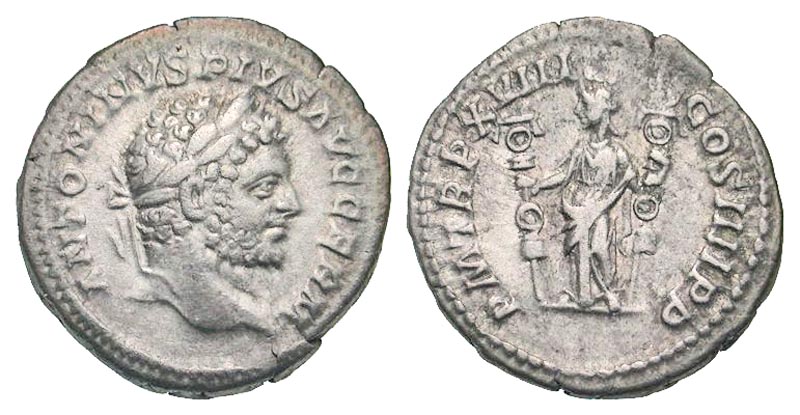 Lot 54-160. Caracalla. A.D. 198-217. AR denarius. Rome mint, struck A.D. 215.