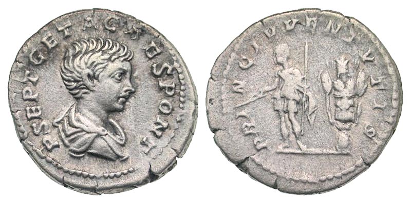 Lot 54-161. Geta. As Caesar, A.D. 198-209. AR denarius. Rome mint, struck A.D. 201.