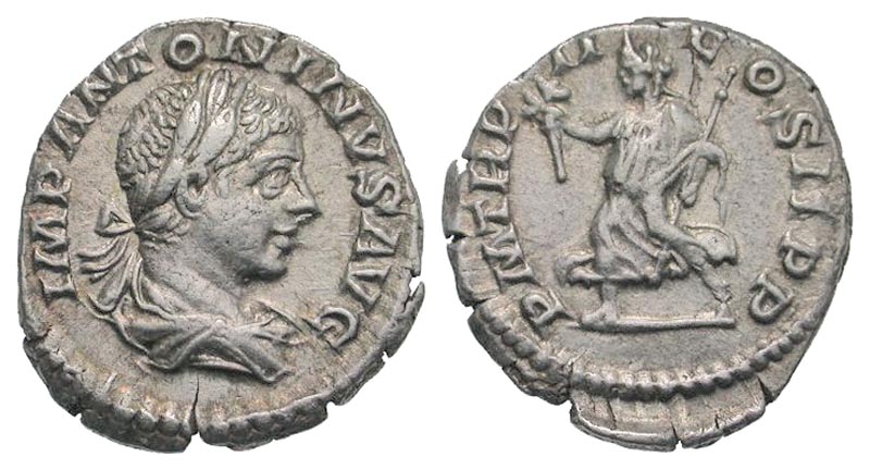 Lot 54-162. Elagabalus. A.D. 218-222. AR denarius. Rome mint, struck A.D. 219.