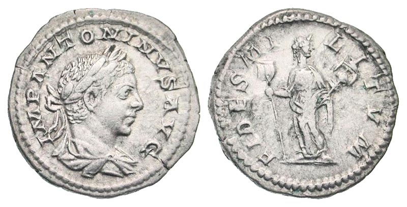 Lot 54-163. Elagabalus. A.D. 218-222. AR denarius. Rome mint, struck A.D. 219-220.