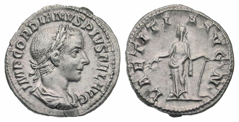 Lot 54-164. Gordian III. A.D. 238-244. AR denarius. Rome mint, struck A.D. 241-243.