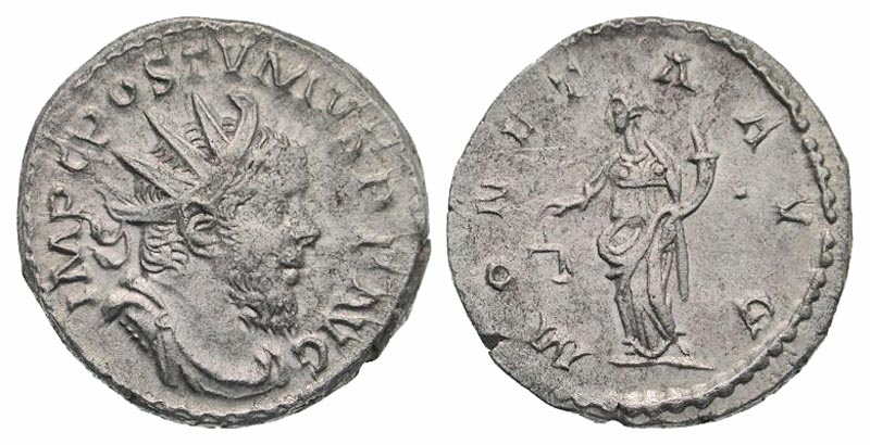 Lot 54-172. Postumus. Romano-Gallic Emperor, A.D. 260-269. AR antoninianus. Treveri mint, struck A.D. 261.