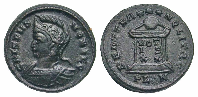 Lot 54-201. Crispus. Caesar, A.D. 317-326. AE follis. London mint, struck A.D. 323-4.